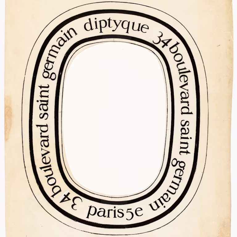 この刺激的な名前に加えられたのは、オーバル(楕円)です。オーバルは、古代エジプトのファラオのカルトゥーシュや、バロック建築、18世紀のメダイヨンなど、多くの影響力を与える芸術と歴史のシンボルです。オーバルは、3人の創業者たちを創業当時から結束させた、創作の自由を縁どるための感覚的な形でもあります。彼らは、このオーバルをエンブレムとし、ディプティックの象徴しとしてキャンドルやフレグランス、ボックス、日常を彩るデコレーションオブジェに使用しました。この特徴的な縦長の形は、優しさと厳しさの間で、無限の可能性を約束しています。そのしっかりとした輪郭は、カリグラムのようなダンシングレター(踊るような文字)を読むように、行間へと誘います。つまりメゾンにとってオーバルとは、その言葉の豊かな意味と影響力、暗示に満ちた世界への入口なのです。