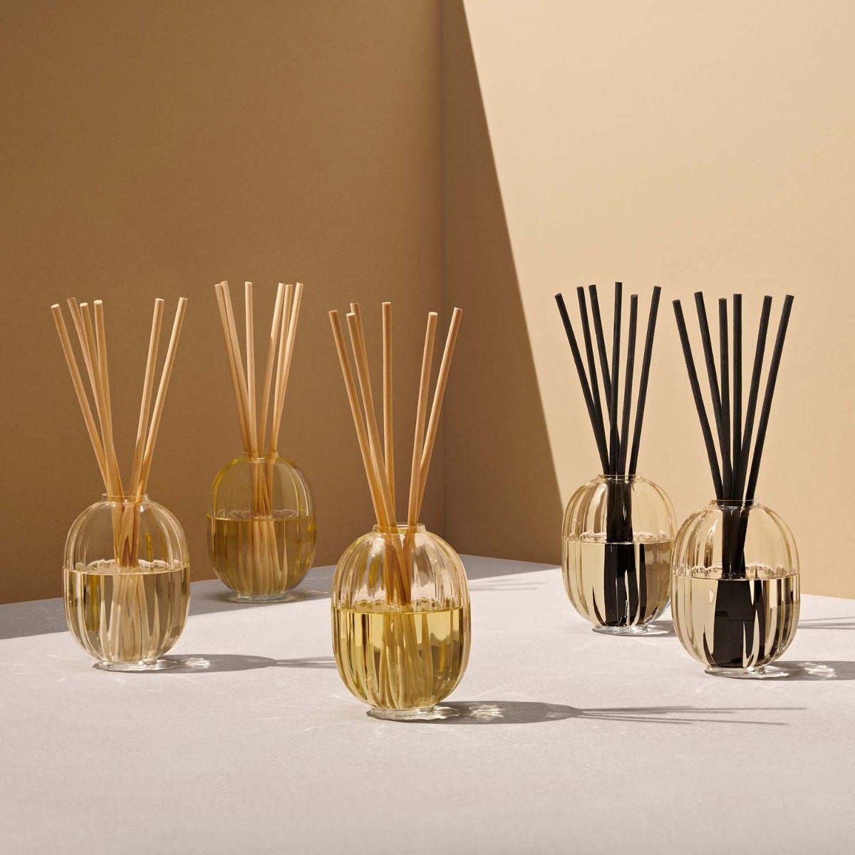 詰め替え可能で何度でも繰り返し使えるホームフレグランスディフューザーは、ラタンスティックを使用して、広々としたスペースにディプティックのアイコニックな香りを漂わせます。ファセットガラスがプリズム効果を生み出し、光との戯れを表現します。